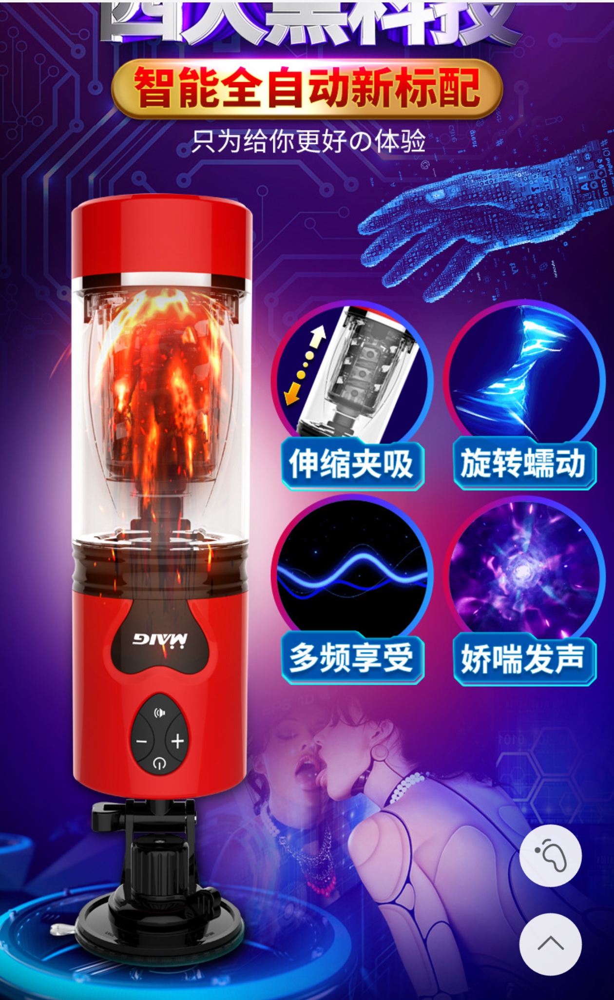Product Functions: Interactive voice, intelligent telescoping, intelligent rotation, multi-frequency vibration